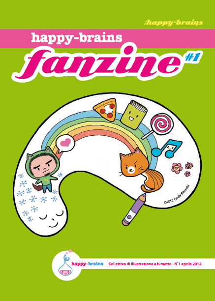 happy-brains fanzine #1 del collettivo happy-brains Grafica e illustrazione in copertina: Emily Silvestri aprile 2012 16 pagine a colori 500 copie tema: happy-brains all’interno: fumetti di Lucrezia Benvenuti, illustrazioni di Samoa Landi e Emily Silvestri e un racconto di Matteo Poccioni. ospite: Matteo Poccioni. Materiale promozionale: