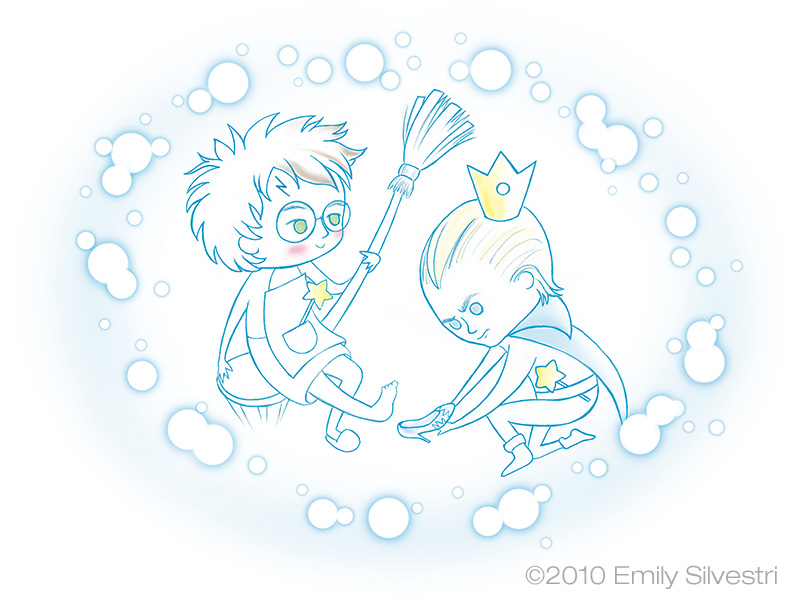 Questa illustrazione vuole mettere in luce come il sogno romantico/erotico di molte ragazze di oggi sia cambiato nella forma dei personaggi, una volta erano le fiabe classiche con la buona povera e bella protagonista che incontra il Principe Azzurro, adesso invece sono due ragazzi. E’ di conseguenza cambiato nei ruoli, non c’è più maschile e femminile, non ci sono più dei modelli di ruolo impostati sul sesso dei protagonisti. Ma non cambiano alcuni particolari… sono molto frequenti infatti fanfiction in cui uno dei protagonisti si comporta da Principessa e l’altro da Principe Azzurro, e spesso il lieto fine è molto simile alle fiabe. Nel disegno è rappresentata la scrittrice di fanfiction che sogna i due eroi della saga di Harry Potter come se fossero Cenerentola e il Principe, i quattro personaggi hanno infatti alcune cose in comune: Harry Potter e Cenerentola sono orfani, poveri, emarginati, maltrattati e sfruttati per lavori domestici dai propri parenti. Vedranno una via di scampo grazie alla magia, nonostante gli impedimenti dei gelosi parenti. Draco Malfoy e il Principe Azzurro sono nobili, (spesso biondi) e ricchissimi. E soprattutto le loro storie d’amore sono sempre sul modello dell’amore impossibile alla Romeo e Giulietta, che nel caso di Harry e Draco, oltre la differenza di ceto, la loro storia risulta ancora più impossibile per l’omosessualità dei personaggi (spesso non dichiarata nelle fanfiction) in origine eterosessuali e l’odio che li accompagna per tutta la storia originale. Più impossibile e quindi più emozionante, soprattutto se si parla di personaggi molto amati che sono stati letti e riletti per anni.