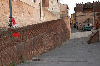 Per indicare la via della mostra ho fatto questa installazione artistica nella piazza davanti il Comune: è la Cappuccetto Rosso di una illustrazione che sto realizzando per il progetto Donne ex Fabula, una futura mostra sulle fiabe e il ruolo della donna che faremo prossimamente alla Stazione Leopolda di Pisa.